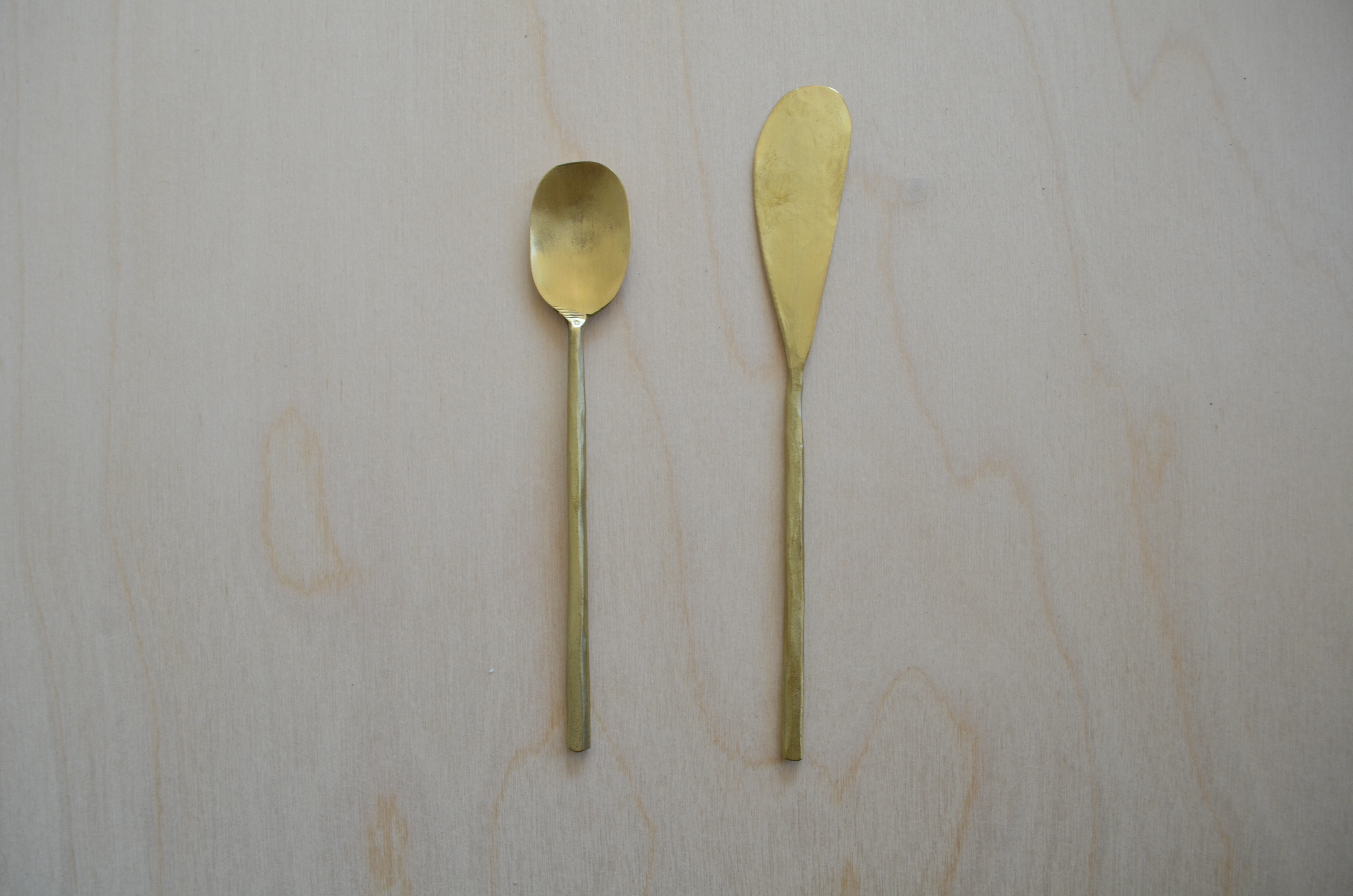 brass knife , dessert spoon